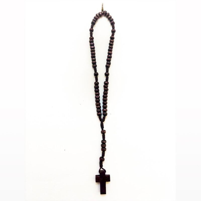 tp010 – Terço de pulso conta e cruz madeira (marrom escuro)