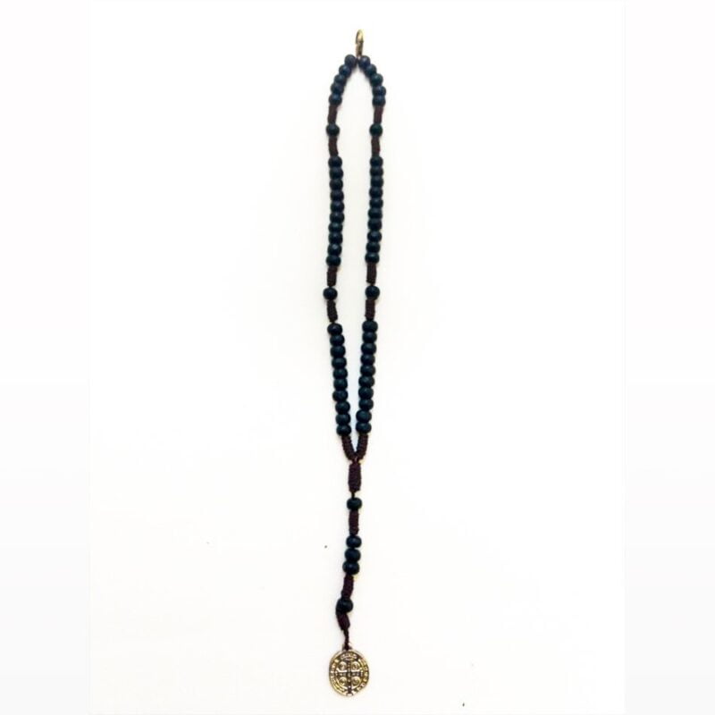 Terço de pescoço com contas em  madeira nº 6 na cor marrom escuro